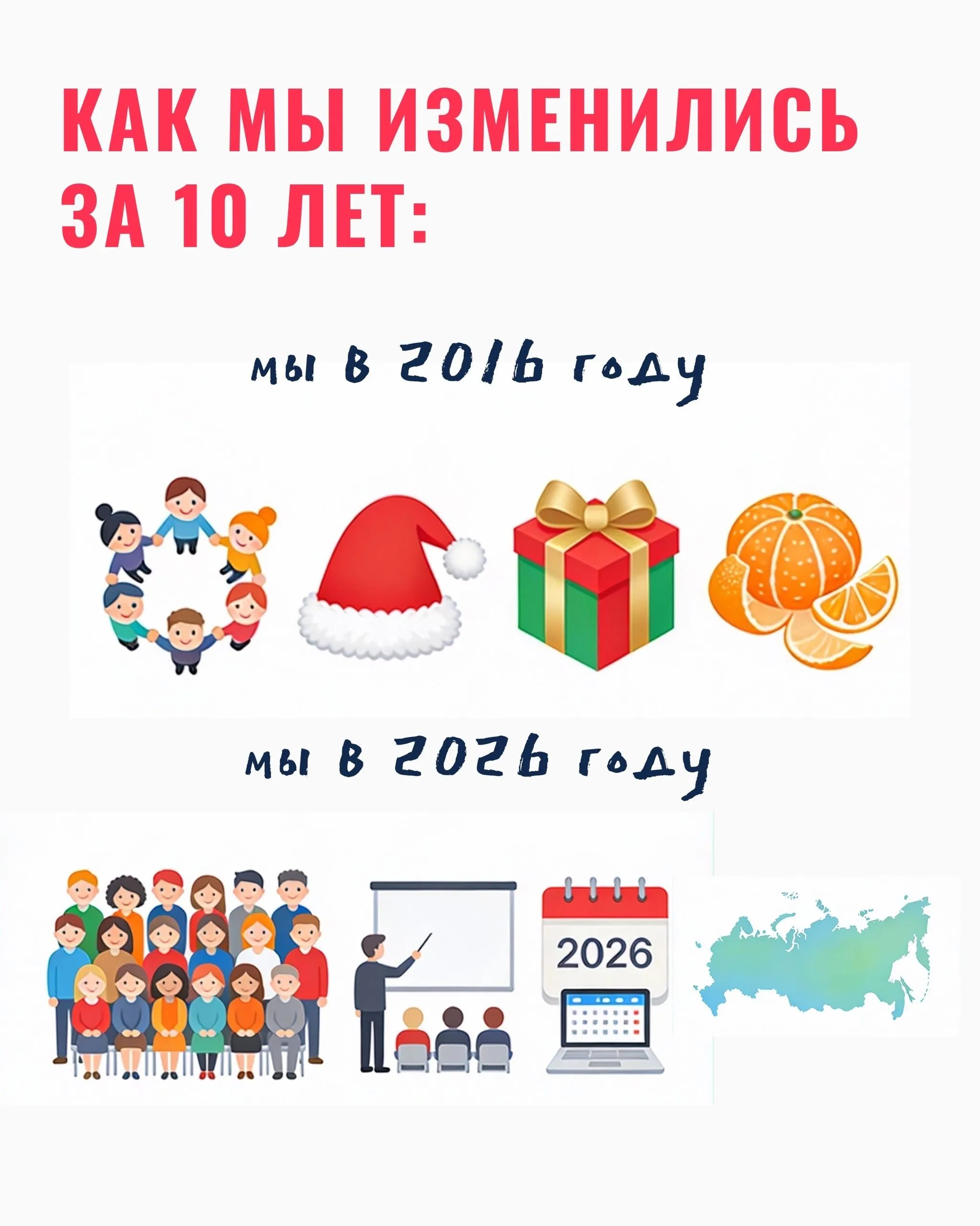 Как мы изменились за 10 лет: от 2016 до 2026 года. ⠀ Добрые локальные инициативы, в том числе, волонтёрские, возникают постоянно. И наш фонд тоже родился из такой локальной инициативы в 2006 году – с желания команды друзей в Новый год и Рождество поздравить и помочь семьям в сложной жизненной ситуации. ⠀ К 2016 году это был уже волонтёрский проект «Рождественский подарок», который стабильно работал 3-4 месяца в году, но зато имел постоянную команду организаторов и волонтёров. В акцию приходили волонтёрить друзья друзей. Мы называли себя «агенты Деда Мороза», а вся акция была сплошное «праздничное дедоморозенье». ⠀ Нас объединяло исключительное сплошное горящее желание помогать и немного новогоднее настроение. Мы работали под лозунгом «отвезём, привезём, подарим радость». И огонь! Никакого фонда не было и в проекте... ⠀ Лариса Безвербная уже третий год была у руля акции в свободное от работы в исследованиях на фармрынке время. Она как раз стала директором направления в её исследовательской компании и планировала продолжать делать карьеру. Но в мае 2016 года забеременела старшим сыном и в конце 2016 года ушла в первый декрет, а затем сразу во второй. ⠀ В это время Лариса вместе с командой волонтёров развивала акцию большими шагами. А лично у Ларисы была серьезная внутренняя трансформация, которая ставила вопросы о смыслах и том, чтобы хотелось сделать в жизни – важное и настоящее. ⠀ Осознанная благотворительность, волонтёрство сильно меняет жизнь, даря много новой, совершенно особой радости и смысла. Решение создавать фонд в 2019 году на базе акции было поворотным и очень важным для всех нас, тех, кто тогда был в команде. Но для Ларисы фонд стал третьим ребёнком. ⠀ Так рождается зерно смысла, то, вокруг чего строится работа и помощь. ⠀ 🔥 Наверное, тогда, в 2016 мы бы не поверили, что в 2026 у нас будет фонд, который войдет в топ-100 лучших НКО по версии Фонда президентских грантов. ⠀ 🔥 Что за время существования фонда мы вместе поможем более 1600 семьям в 70 регионах страны больше, чем на 100 миллионов рублей. ⠀ 🔥 Что у нас уже будут волонтёрские команды и лидеры в нескольких региональных подразделениях. ⠀ 🔥 Что мы будем развивать не только адресную помощь, но и перейдем к системной помощи семьям. Мы начали новые проекты: «Путь к себе» (длительная индивидуальная программа помощи мамам с детьми с инвалидностью) и «Путь волонтёра» (программа обучения волонтёров), важной частью которого является лидерская программа. ⠀ 💥 Что не только мы всей командой будем много и профессионально учиться вместе с лучшими НКО страны, но и у нас уже будут учиться социальному проектированию – как проходить этот путь, создавая и развивая проект с нуля. Мы сами были когда-то в такой же ситуации, и нам есть что сказать и чему научить участников акселератора социальных проектов Фонда президентских грантов. ⠀ Челендж 2016-2026 заставил нас задуматься, что же произошло за эти 10 лет. Но наша история началась гораздо раньше, и мы хотим развиваться и помогать дальше. ⠀ Делимся с вами архивными фото десятилетней давности и напоминаем свежие – январские. Будем рады, если вы в комментариях к посту поделитесь тем, что изменилось у вас за это время, и покажете свои фото 2016/2026.