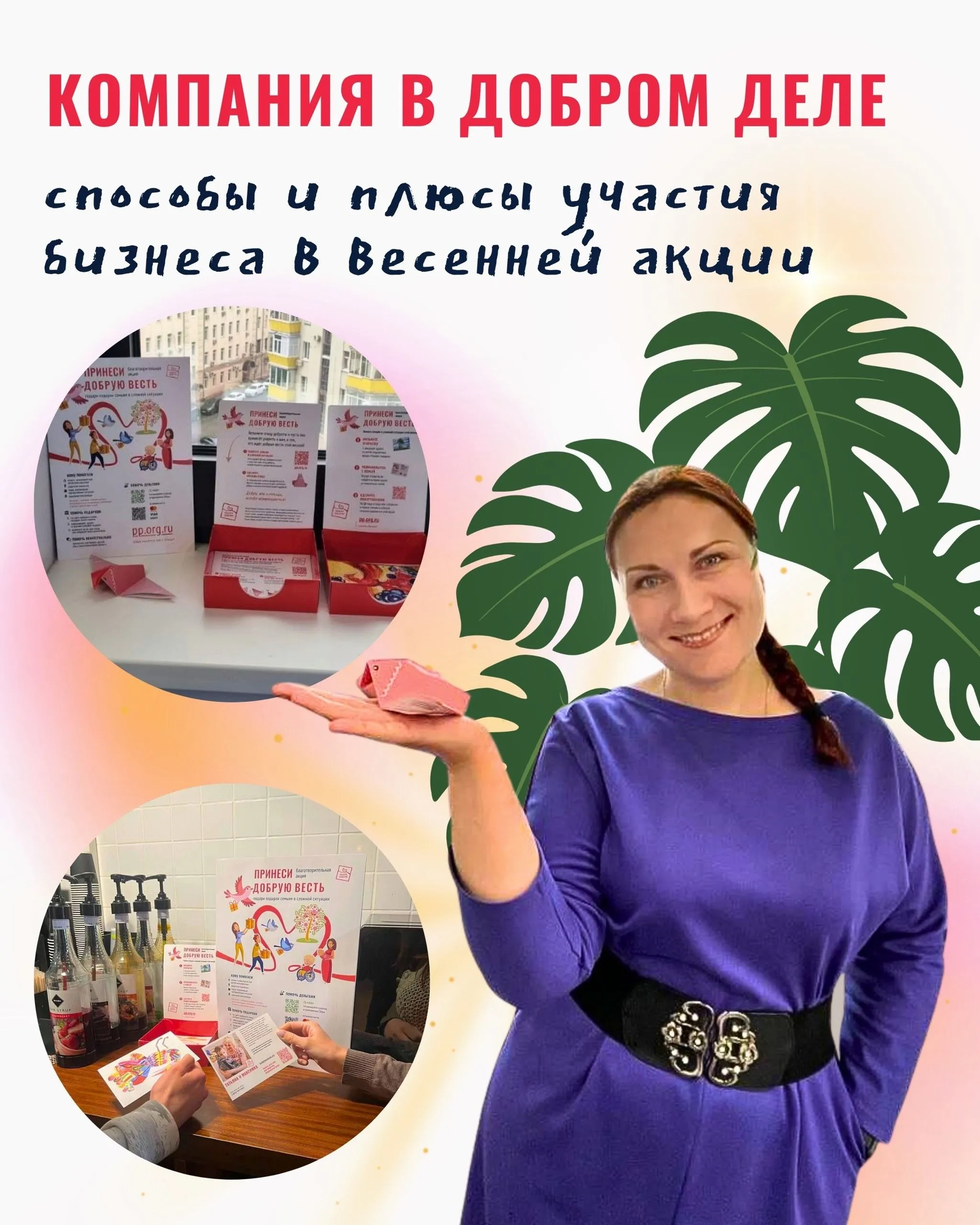 1️⃣ Участвуйте в акции «Стань хорошей новостью» коллективом компании (как Согаз-ОМС): ⠀ Помогайте конкретным людям или в игровом формате через лэндинг акции. Весенний лендинг, брендированный вашим лого и готовые макеты писем для электронных рассылок мы предоставим. Пример тут 👉🏼 pp.org.ru/sogaz ⠀ Механика такая: Разошлите информацию об акции по сотрудникам → они сами выберут, кому и чем хотят помочь → теплые отзывы семей и отчёт об оказанной помощи вдохновят сотрудников. ⠀ 2️⃣ Установите коробку с нашими «самолетиками добра» или открытками в офисе, ресторане, салоне, центре и т.д. Сотрудники и ваши клиенты смогут взять: ⠀ 🔹 листовки «самолетики добра», которые можно самим легко сложить по пунктиру. Внутри каждого вы можете сами написать пожелание, а ещё там QR-код на возможность поддержать акцию. Самолетики - это и доброе дело, и запуск позитивных коммуникаций внутри офиса! Они станут доброй почтой, с помощью которой коллеги компании поддерживаю друг друга ✈️ ⠀ 🔹открытки с рисунками детей фонда, а на обратной стороне — узнать истории подопечных семей и перейти по QR-коду, чтобы помочь. ⠀ 3️⃣ Социальное партнерство ⠀ 🔸Продукт, который вы продаёте, может стать уникальным – товаром со смыслом. Например, для салона красоты - % с продаж одной из услуг в течение недели может идти на помощь семьям акции, для кофейни - % с продажи десертов и так далее. Мы придумаем добрую акцию под ваш бизнес! ⠀ 🔸Размещение на информационных ресурсах компании (сайт, соцсети) баннеров и информации об акции. ⠀ 🔸Помощь семьям товарами и услугами компании. ⠀ 🔸Передача «списанных» офисных ноутбуков и другой оргтехники для учебы детям. ⠀ 📍Принять участие компанией можно зарегистрировавшись по ссылке 👉🏼 forms.yandex.ru/cloud/69d7...
